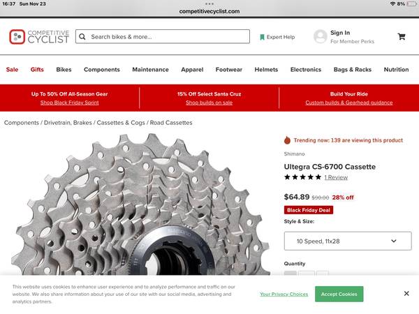 Hard to find Ultegra 10 speed stuff, especially 11/23, which I loved for fast Fiesta Island laps.