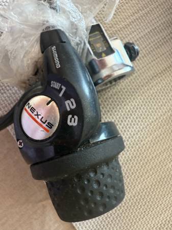 New unused Nexus 3 speed shift / cable. This deal also includes 2 additional used but functional Nexus units, some unequal-length Electra grips made for the Nexus, and a couple chain tensioners. $20 for all. Located in Ocean Beach.
