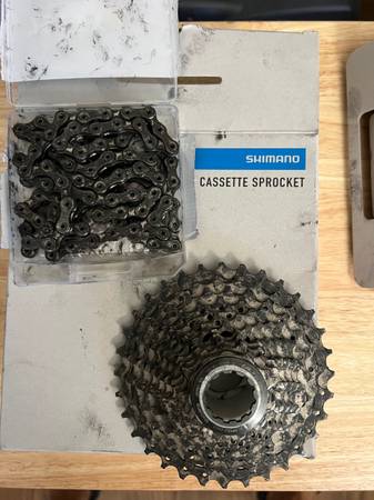 For sale are used and still in good condition for ROAD BIKE Shimano Ultegra 11 speed 11-34T cassette and 11 speed Dura Ace chain. Asking price is $30. This sale is for Local Pick up, Cash Payment...