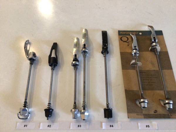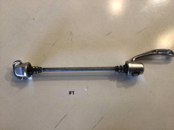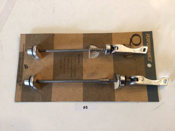 5. Q STIX (Performance Bike) skewer set. Front brand new. Rear used sparingly. Silver. Price: $45
