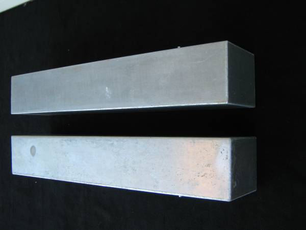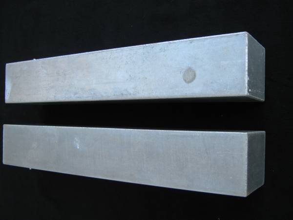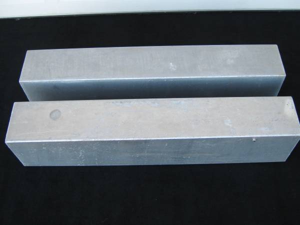 Two Aluminum Tanks: 50" long x 8-1/4" wide x 10" high. Each tank holds 17.85 gallons. The tanks weigh about 25 lbs each and have two baffles inside, they were never filled with liquids. They were purchased new, never installed. Selling as a pair for $390., no haggle price. In Escondido, call's only please.