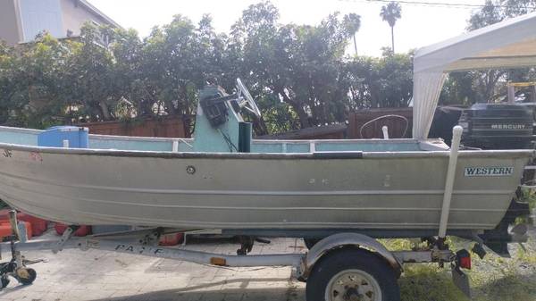 Aluminum boat Western center console fishing boat 15ft with outboard 35hp two stroke mercury and galvanized trailer. Boat has current tags. Boat is located in San Diego. Serious buyers