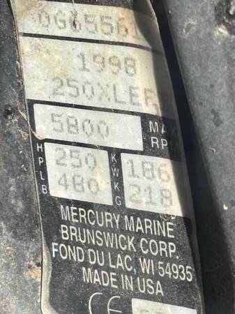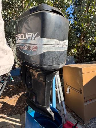 1998 Mercury 250 EFI Extra Long Shaft outboard Two Stroke for Parts Was running fine until the engine harness was damaged. Lots of good parts. No lower unit or trim and tilt.