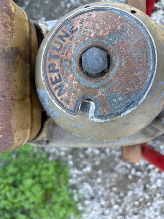 Neptune Mighty Mite vintage outboard motor, 1.7hp, Model WC1, Serial number D015N. Made by Muncie Gear Works. This model WC1 produced at Cordell, GA between 1961 and 1969. Referred to as “Gold Bug” or “Gold Fish”motor. Has been in storage many years.