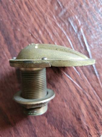This is a bronze combo scoop/intake strainer thru hull with nut. The ID of the pipe is 1”. The scoop measures approximately 4” long, 3” wide, pipe 2½” tall, overall 3½” tall. This has not been used, but has been stored in an outside shed with other boat parts. This requires 3 screws to attach to the hull, not included.