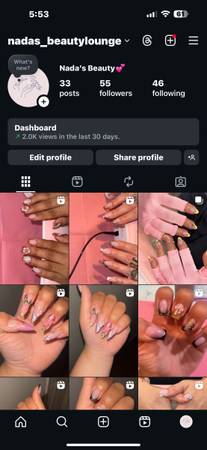 Any nails you want starts at 45$! Just show me what you are looking for and I’ll give you a price! I am home based! If you want to dm me or look at more of my work here is my instagram @nadas_beautylounge