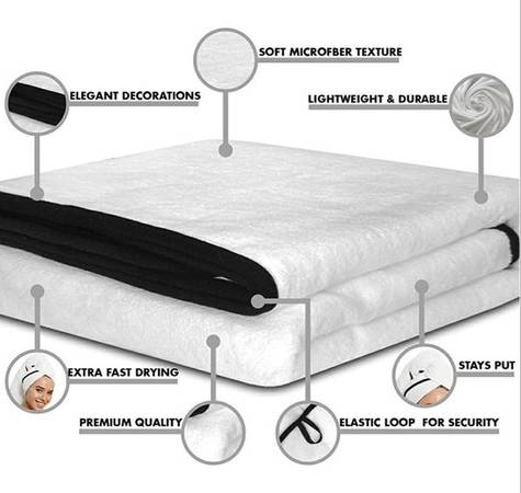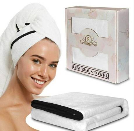 Brand new in a box, never been opened or used. For pick up in El Cajon only. Price is firm. Size 25" x 46". Great for all hair types, especially thick or curly hair. The towel wraps around your head like the turbans style, with the strong elastic loop secured tightly, thus ensuring that you can move around freely during your daily routine.