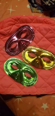 Party half masks. Lightweight. 4 purple, 4 golden, 3 green. Total 11. Brand new. Pick up in 92128 zipcode. $10 for all.