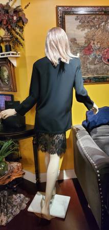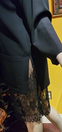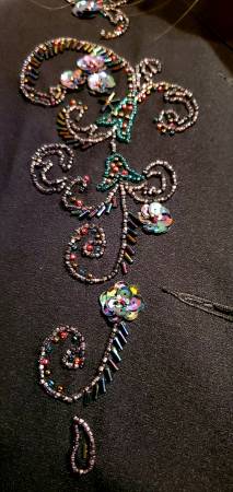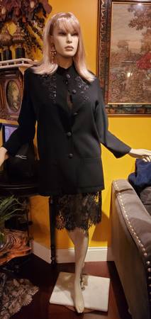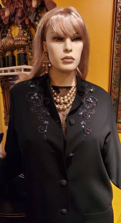 Gorgeous Black Long Jacket. It has beaded floral design in the front and beaded buttons. Cutouts on the sides. Size 4. This jacket is perfect for any formal occasion to be worn over the dress or...