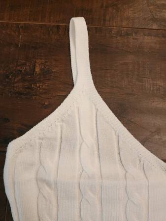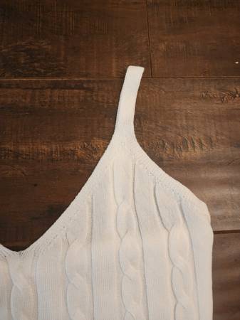 Brand New White Sweater Spaghetti Strap Crop Top Size Small. Completely brand new, never worn. 75% viscose. No flaws, rips, or stains. Measures 13 in across and 16 in long when laying flat. Brand:...