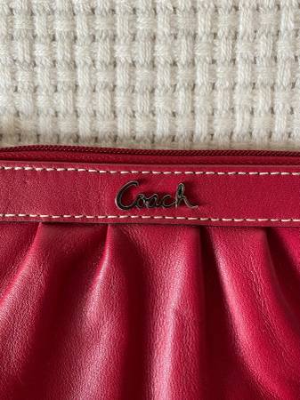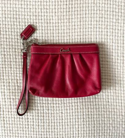 New with tags. Red leather Coach Clutch - Wristlet Fits iPhone. Perfect for evening! 6.5 x 5.5 inches $55.00 Please send your phone number with email.