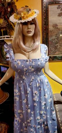Floral sleeveless maxi dress with ruffled straps. Size L. It has underskirt and 2 side pockets. Looks very stylish for any occasion.