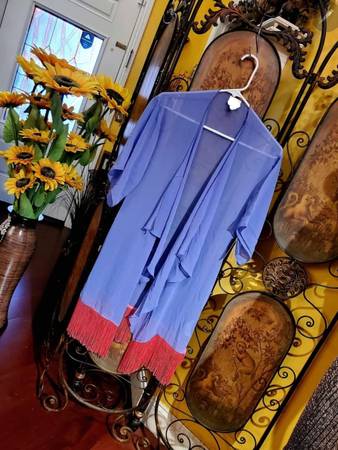 Shawl (cape) with fringes. Perfect for the beach or to pair with dress or jeans. Seethrough material. Size S.