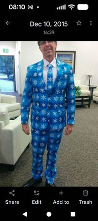 This is a fun suit that you have to have some balls to wear, and everyone will want a pic with you if you wear it out! I've worn it on average once each of the last 7 years, so it's basically new. It's kept in a garment bag, so it's clean. It is a Medium-Slim. I'm 5'9 and 150, to give you an idea. I'm moving soon and thinning out my stuff.