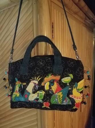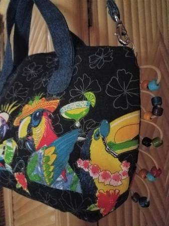 Caribbean style canvas purse with parrots, Hawaiian flowers and beading. Holds all your essentials for weekend getaway or vacation handbag. Tropical coastal vibe, perfect for parrothead or Margaritaville fan. 12"w 9"h 4.5" Removable crossbody strap and zip closure. ❀ New, never used $30