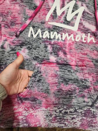 Like New Discontinued Pink Tie Dye Mammoth Sweatshirt Size XL. They no longer sell this design. 55% cotton. Selling because I bought a new sweatshirt. I wore this oversized to snowboard and I am a size 4/small for reference. I believe it is a youth XL but I have the measurements listed in the posting. Sweatshirt has a hood, drawstrings, and front pocket. Unique print. No flaws, rips, or stains. I paid $75 for it. Measures 24.5 in long by 24 in wide when laying flat.