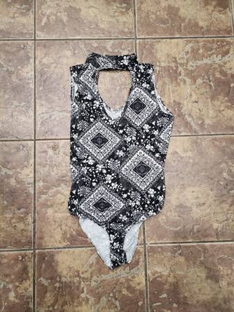 Like New High Neck Sleeveless Bodysuit Size Small. Brand: Rebel Sugar. Very soft material, it almost feels like suede. Top features a flattering v neck with a turtleneck top. I love this bodysuit because it is unique, however I haven't worn it in a while so I am selling it. Has snap closures and buttons behind the neck. Has a cute keyhole design in the back. Perfect to wear with a high waisted skirt or jeans.There is no size tag but it fits like a small. Measures 26 in long and 12 in across when laying flat. No flaws, rips, or stains. In perfect condition.