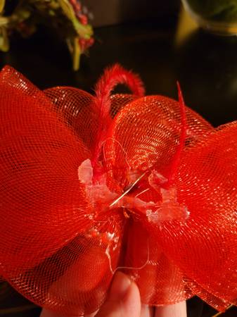 Red decorative bow. Great accessory to be used as hair piece, for your hat to make vintage look, or it can be used as a broush for your Halloween dress, etc. It does not have any attachment, so you...