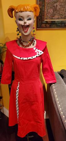 Gorgeous one of a kind dress. Retro vibes! Perfect for 60s party theme dress up. No brand label , only size M tag. Like new, just need ironing. Fur is not included.