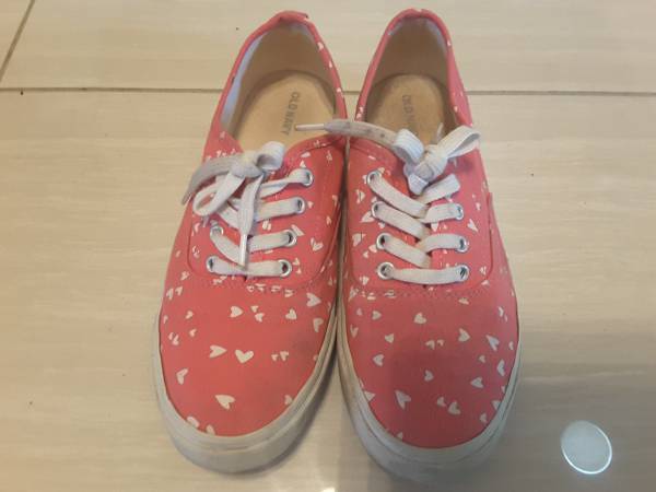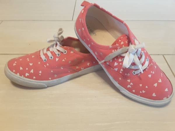 Both shoes for youth girl size 6 in good condition. Sale for $12 ●● VANS pink shoes design little white Heart Size 6 ●● Vibrant pink plastic shoes apple design size 6 If you like the shoes, please...