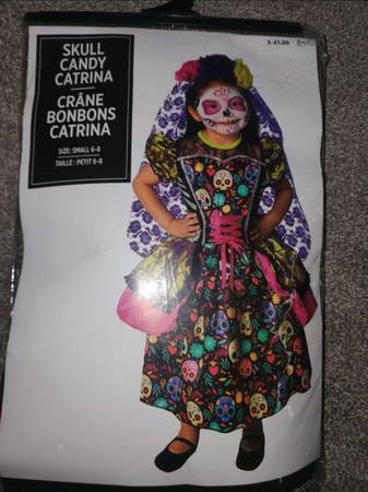 asking $30 Original $45 + tax 2 pieces dress + headband with Veil Dia de los Muertos Day of the Dead Halloween Dress up Party Birthday Comic con Sugar skull Candy Girl's small size 6-8