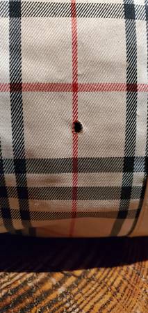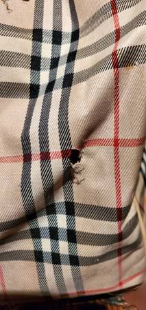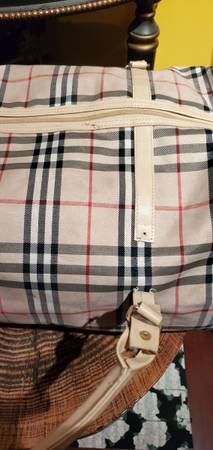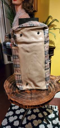 It needs repair: handles are broken, few holes, some stains, inside lining shows signs of wear. Probably easy fix for handy seamstress.