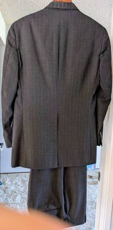Suit Men's Nordstrom tropical weight wool. Charcoal grey pinstripe. Waist is around 30-31. Jacket, I am about 5-9, 5-10 150 pounds give or take. The button fell off the back pocket. I have the...