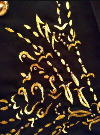 Vintage one of a kind black jacket (blazer) for sale. It has golden buttons in the front, back and on the sleeves. Also it is decorated with beautiful embroidered flowers and beads in the front. It...