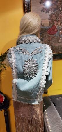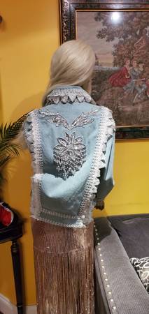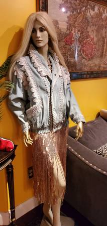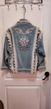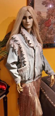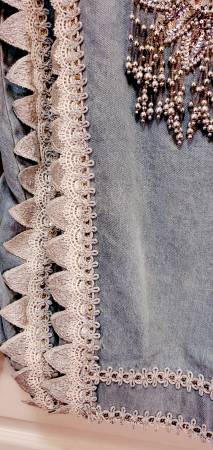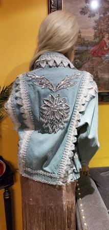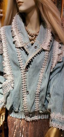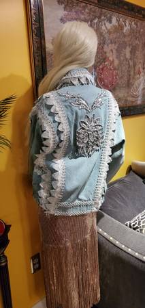 Unique Vintage Denim Jacket. Gorgeous beads and lace trim all over were custom made. One of a kind! You won't find another jacket like this. Size M. Price firm.