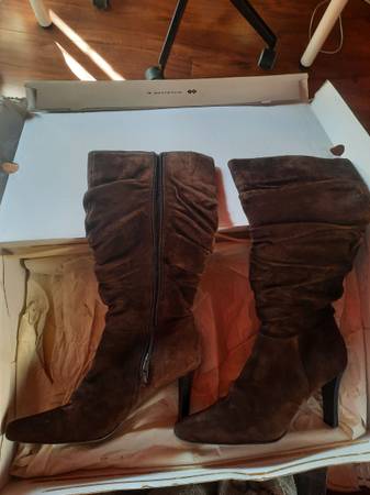 Woman's high heeled boots, leather, dark brown