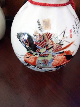 1970 VTG Japanese Sonohiro Okayama Vase Samurai Warrior in Battle Scene Crackle Glaze / Stamped 5" H