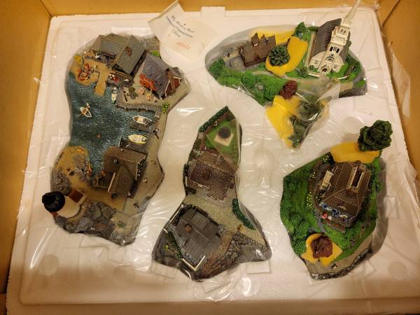 This is Fishermans Cove, a vintage sculpture from Danbury Mint by Colin Gough, Serial Number C3730. This is new, in the original box, has never been displayed. Included are the instructions for assembling the 4 pieces and Certificate of Ownership.