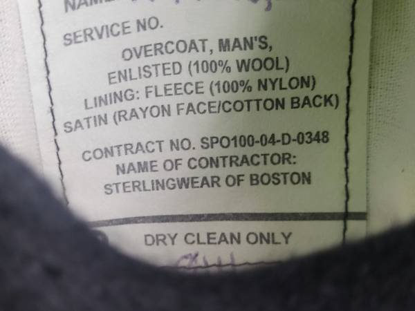 Sterling Wear of Boston, DSCP Quarterdeck collection and VI-MILL INC. (Viking Military)trench coat. 38 Regular mostly with one 42R standard pea coat and 40R trench coat. Well kept(dry cedar chest)...