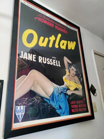 Original mid-1940s OUTLAW movie poster – Jane Russell, Jack Buetel – Howard Hughes