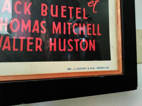 Printed in Belgium (Imp. J. Lichtert & Fils – Bruxelles) and presumably displayed for the movie’s opening (1946?) at the famous European movie house Théâtre des Variétés, located at 25, Rue de Malines, Bruxelles (Brussels). This theater opened in 1937, and is currently undergoing renovation after sitting abandoned for more than 40 years. It is due to re-open in 2026.