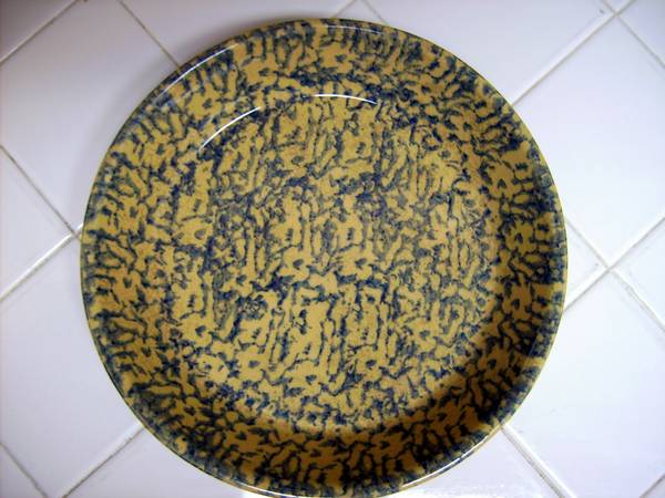 Robinson-Ransbottom Pottery Spongeware 9-1/2 in Pie Plate/Bowl, 1920's era collectible antique pie plate in like-new condition.