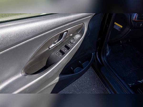 This Elantra GT N Line features a striking Black Noir Pearl exterior complemented by a bold Red interior, creating a head-turning, athletic look. Its Front-Wheel Drive (FWD) configuration, paired with a turbocharged engine and sport-tuned suspension, delivers an engaging and responsive driving experience thats perfect for both city streets and winding roads.