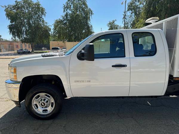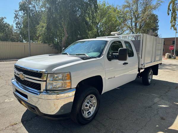 2011 Chevy Silverado 2500 H.D. Extra Cab Stake Bed Truck, 6.0L V-8, auto trans, A/C, tilt, 133k miles, trailer brakes, 9' stake body, tool bin, tow pkg, 80%-100% tire tread, no leaks or rust, just serviced, ready for the jobsite. Nationwide shipping and financing are available. Checkout all our inventory at TruckDepotLA.com.