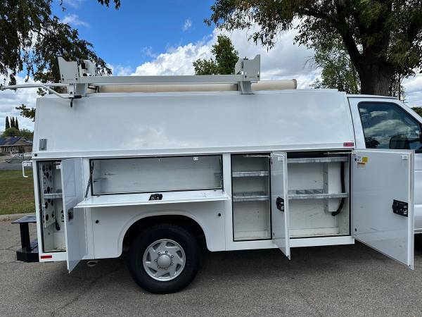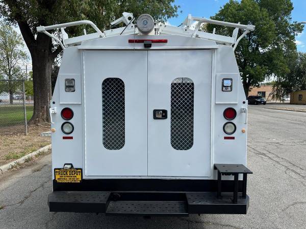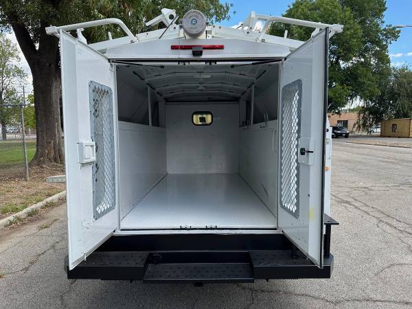 2013 Ford E-350 Cutaway Plumbers Van, Flex fuel 5.4L V-8, auto trans, A/C, tilt, cruise, 135k miles trailer brakes, backup camera, Knapheide 11' service body, slide lock security bar, ladder rack, conduit box, tow pkg, vice mount, 0%-90% tire tread, no rust, just serviced, runs and drives great. Nationwide shipping and financing are available. Just Serviced & Ready for the Jobsite! Checkout all our inventory at TruckDepotLA.com.