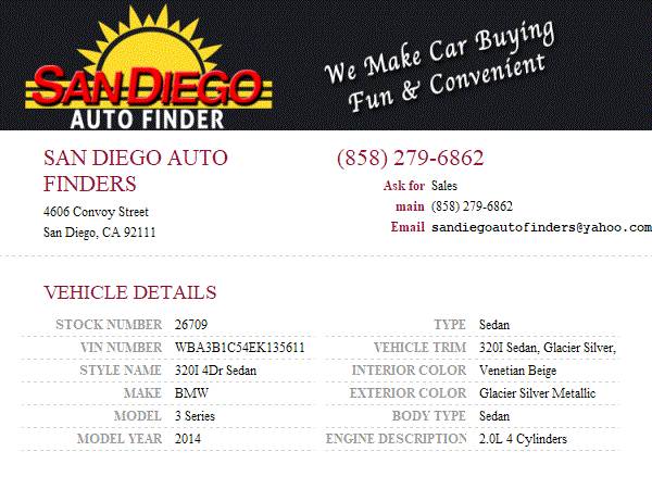 San Diego Auto Finders Ask for: Sales ☎ (858) 279-6862 4606 Convoy Street San Diego, CA 92111 Description: