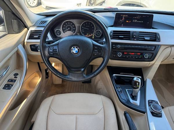 Drive our 2014 BMW 3 Series 320i Sedan to enjoy a heritage of high performance in Glacier Silver Metallic! Powered by a TurboCharged 2.0 Liter 4 Cylinder that offers 180hp paired to an 8 Speed Automatic transmission with Sport and Manual modes. This Rear Wheel Drive sedan also rewards you with athletic handling that inspires confidence in the corners, and it scores nearly 35mpg on the highway. Sleek and stylish, our 3 Series is dressed to impress with strong lines, fog lamps, a sunroof, and bold alloy wheels.