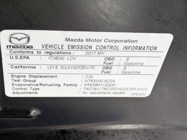 The following items have been reconditioned on this vehicle: all new tires and new battery! * Keyless Start * Rear Spoiler * Black; Cloth Seat Trim * Jet Black MicaAutoNation Mazda Carlsbad is pleased to be currently offering this 2017 Mazda Mazda3 5-Door Sport with 70,115mi. The 2017 Mazda offers compelling fuel-efficiency along with great value. You will no longer feel the need to repeatedly fill up this Mazda Mazda3 5-Door Sport's gas tank, in part because of it's superb EPA rating. You can tell this 2017 Mazda Mazda3 5-Door has been pampered by the fact that it has less than 70,115mi and appears with a showroom shine. Beautiful color combination with Jet Black Mica exterior over Black interior making this the one to own! More information about the 2017 Mazda Mazda3 5-Door: Mazda's goal with the Mazda3 has always been to offer the most fun-to-drive compact car on the market. The Mazda3 directly competes with some of the best-selling cars on the road, including the Honda Civic, the Toyota Corolla and the Hyundai Elantra. With a starting base price below $18,000, the Mazda3 is competitively priced while still maintaining enough upscale features to feel like a much more expensive car. With a sportier and more direct driving feel than its competitors, the Mazda3 is able to do everything typically asked of a compact, while still putting a smile on the face of drivers. Interesting features of this model are Efficient, powerful drivetrains, good use of space, loaded with features, and unique styling