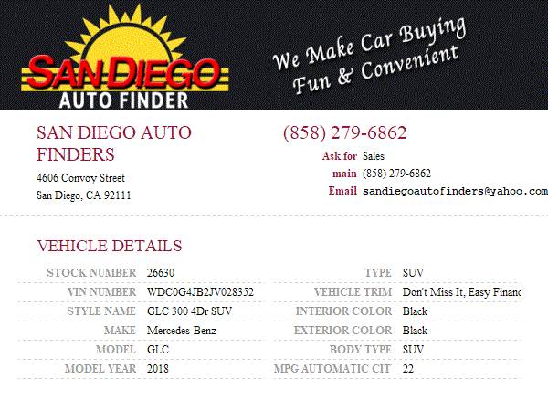 Enter this link to see more images plus all other inventory we have available: https://lyv.cc/63LAWSan Diego Auto Finders 4606 Convoy Street San Diego, CA 92111 Ask for: Sales main: (858) 279-6862 San Diego Auto Finders Ask for: Sales ☎ (858) 279-6862 4606 Convoy Street San Diego, CA 92111 A27FBAFAEA464DBBB650D168074EE06C 41869932 12098323