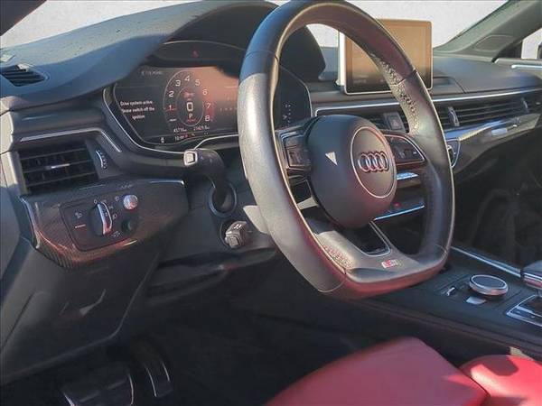 * Magma Red; Fine Nappa Leather Seating Surfaces * Daytona Gray Pearl Effect * Sun/Moonroof * Leather Seats * Keyless Start * Rear SpoilerThis vehicle includes a Money-Back Guarantee* and passed our precise inspection process. Best of all the price you see is the price you pay. No haggling. No back and forth. No pressure. And this price is so good it is guaranteed.BMW of Carlsbad has a wide selection of exceptional pre-owned vehicles to choose from, including this 2019 Audi S5 Coupe. Pull up in the vehicle and the valet will want to parked on the front row. This Audi S5 Coupe Prestige is the vehicle others dream to own. Don't miss your chance to make it your new ride. Enjoy the comfort and safety of this AWD Audi S5 Coupe Prestige equipped with many standard features found on other vehicles as optional equipment. In addition to being well-cared for, this Audi S5 Coupe has very low mileage making it a rare find. Added comfort with contemporary style is the leather interior to heighten the quality and craftsmanship for the Audi S5 Coupe Prestige. Thank you for your interest in one of BMW of Carlsbad's online offerings. Please continue for more information regarding this 2019 Audi S5 Coupe Prestige with 45,714mi. Excellence, luxury and stature are just a few of the pillars this car is built upon. Enhanced performance, a refined interior and exceptional fuel economy are just a few of the things you'll enjoy about this all-wheel drive vehicle. Low, low mileage coupled with an exacting maintenance program make this vehicle a rare find. Marked by excellent quality and features with unmistakable refined leather interior that added value and class to the Audi S5 Coupe Prestige.*Money-Back Guarantee is valid for 5 days or 250 miles, whichever comes first. Subject to certain terms and conditions. See store for details. Some restrictions apply.