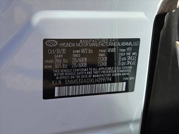* Convenience + Premium Package * Sun/Moonroof * Leather Seats * Quartz White * Lane Keeping Assist * Keyless Start * Rear Spoiler * Espresso/Gray; Leather Seating SurfacesLooking for a clean, well-cared for 2020 Hyundai Santa Fe? This is it. Treat yourself to an SUV that surrounds you with all the comfort and conveniences of a luxury sedan. Low, low mileage coupled with an exacting maintenance program make this vehicle a rare find. There are many vehicles on the market but if you are looking for a vehicle that will perform as good as it looks then this Hyundai Santa Fe SEL is the one! You can finally stop searching... You've found the one you've been looking for.