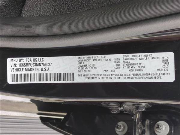 * Trx Level 2 Equipment Group * Wheels: 18" X 9" Bead-Lock Aluminum * Dual-Pane Panoramic Sunroof * Harman/Kardon 19 Speaker Premium Sound * Bed Utility Group * Tri-Fold Tonneau Cover * Panoramic Roof * Blind Spot & Cross Path Detection * Leather Seats * Surround View Camera System * Navigation System * Parksense Front/Rear Park Assist W/Stop * Trailer Tow Group * Remote Start System * Diamond Black Crystal Pearlcoat * Keyless Start * Cooled Front Seat(S) * Black; Leather Trimmed Bucket Seats * Diamond Black Crystal Pearlcoat * Engine: 6.2L Supercharged Hemi V8 Srt * Monotone Paint * Transmission: 8-Speed Automatic (8Hp95)This vehicle includes a Money-Back Guarantee* and passed our precise inspection process. Best of all the price you see is the price you pay. No haggling. No back and forth. No pressure. And this price is so good it is guaranteed.Thank you for your interest in one of BMW of Carlsbad's online offerings. Please continue for more information regarding this 2021 Ram 1500 TRX with 35,875mi. This Ram includes: TECHNOLOGY GROUP Auto-Dimming Rearview Mirror Heads-Up Display ENGINE: 6.2L SUPERCHARGED HEMI V8 SRT (STD) Supercharged 8 Cylinder Engine Gasoline Fuel DIAMOND BLACK CRYSTAL PEARLCOAT TRX LEVEL 2 EQUIPMENT GROUP Keyless Start Driver Vanity Mirror Cooled Rear Seat(s) Heated Rear Seat(s) Variable Speed Intermittent Wipers Remote Engine Start Mirror Memory Passenger Vanity Mirror Cooled Front Seat(s) Heated Steering Wheel Intermittent Wipers Seat Memory Rear Parking Aid Back-Up Camera Universal Garage Door Opener Leather Steering Wheel Power Passenger Seat Rear Defrost Power Driver Seat Heated Front Seat(s) Power Door Locks Keyless Entry Adjustable Pedals Passenger Illuminated Visor Mirror Blind Spot Monitor Driver Illuminated Vanity Mirror Cross-Traffic Alert Remote Trunk Release Pass-Through Rear Seat Rain Sensing Wipers *Note - For third party subscriptions or services, please contact the dealer for more information.* Pull up in the vehicle and the valet will want to parked on the front row. This Ram 1500 TRX is the vehicle others dream to own. Don't miss your chance to make it your new ride. This 4WD-equipped vehicle will handle beautifully on any terrain and in any weather condition your may find yourself in. The benefits of driving a 4 wheel drive vehicle, such as this Ram 1500 TRX, include superior traction and stability. You can tell this 2021 Ram 1500 has been pampered by the fact that it has less than 35,875mi and appears with a showroom shine. Drive any city's streets like you've lived there all your life using the navigation system on this Ram 1500.*Money-Back Guarantee is valid for 5 days or 250 miles, whichever comes first. Subject to certain terms and conditions. See store for details. Some restrictions apply.