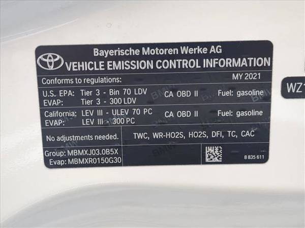 * Driver Assist Package * Carbon Fiber Mirror Caps (Tms) * Leather Seats * Navigation System * Carpet Cargo Mat (Tms) * Lane Keeping Assist * Alloy Wheel Locks (Tms) * Keyless Start * Heads-Up Display * 50 State Emissions * Absolute Zero * Premium PackageThis vehicle includes a Money-Back Guarantee* and passed our precise inspection process. Best of all the price you see is the price you pay. No haggling. No back and forth. No pressure. And this price is so good it is guaranteed.BMW of Carlsbad is honored to present a wonderful example of pure vehicle design... this 2021 Toyota GR Supra 3.0 only has 37,710mi on it and could potentially be the vehicle of your dreams! This Toyota GR Supra 3.0's level of quality is not meant for just anyone. It's meant for the person who strives for a classy, comfortable, and luxurious car. It's not often you find just the vehicle you are looking for AND with low mileage. This is your chance to take home a pre-owned and barely driven Toyota GR Supra. There is no reason why you shouldn't buy this Toyota GR Supra 3.0. It is incomparable for the price and quality. This is the one. Just what you've been looking for.*Money-Back Guarantee is valid for 5 days or 250 miles, whichever comes first. Subject to certain terms and conditions. See store for details. Some restrictions apply.