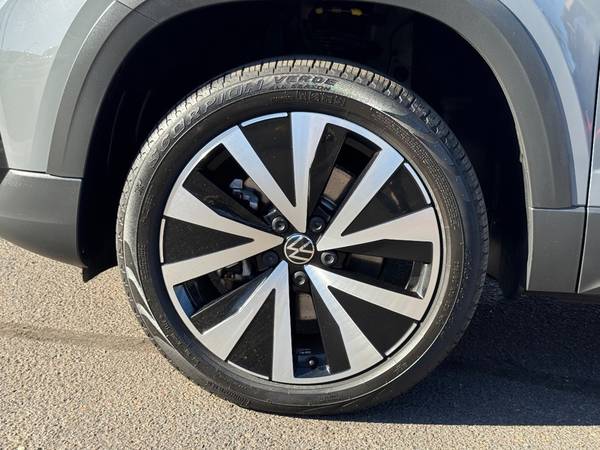 Our 2022 Volkswagen Taos SE is versatile and athletic in Pure Gray! Powered by a TurboCharged 1.5 Liter TSI 4 Cylinder serving up 158hp for an 8 Speed Automatic transmission. As a result, this Front Wheel Drive SUV shows off spirited acceleration plus returns nearly 36mpg on the highway. You'll also appreciate the sculpted good looks of our Taos, which is well equipped with bold LED lighting, silver roof rails, matching mirror caps, alloy wheels, and heated windshield-washer nozzles for a premium touch.