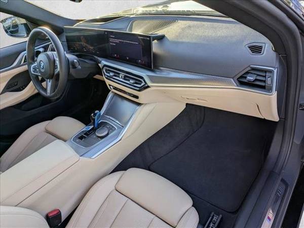 * M Sport Package * Individual Dravit Grey Metallic * Bmw Curved Display W/Hud * Icon Adaptive Led Headlights W/Laserlight * Premium Package * Shadowline Package * Harman/Kardon Surround Sound System * Sun/Moonroof * Heated Front Seats * Navigation System * Extended Shadowline Trim * Ambient Lighting * Wireless Device Charging * Keyless Start * Rear Spoiler * Heads-Up Display * Aluminum Rhombicle Anthracite Trim * Canberra Beige; Perforated Sensatec Upholstery * Shadowline Exterior Trim * Wheels: 19" X 8.5" Fr & 19" X 9.0" Rr M Y-SpokeLooking for a clean, well-cared for 2023 BMW i4? This is it. This BMW includes: HARMAN/KARDON SURROUND SOUND SYSTEMPremium Sound System ALUMINUM RHOMBICLE ANTHRACITE TRIMAMBIENT LIGHTINGINDIVIDUAL DRAVIT GREY METALLICM SPORT PACKAGETires - Front Performance Aluminum Wheels Rear Spoiler Tires - Rear Performance Active Suspension ICON ADAPTIVE LED HEADLIGHTS W/LASERLIGHTAutomatic Highbeams LED Headlights PREMIUM PACKAGEHeated Steering Wheel Heated Front Seat(s) Passenger Adjustable Lumbar Driver Adjustable Lumbar HEATED FRONT SEATSHeated Front Seat(s) BMW CURVED DISPLAY W/HUDHeads-Up Display SHADOWLINE PACKAGERear Spoiler LED Headlights EXTENDED SHADOWLINE TRIMWIRELESS DEVICE CHARGINGBluetooth Connection WHEELS: 19"Tires - Front Performance Aluminum Wheels Tires - Rear Performance SHADOWLINE EXTERIOR TRIM (DISC)CANBERRA BEIGE, PERFORATED SENSATEC UPHOLSTERYPremium Synthetic Seats *Note - For third party subscriptions or services, please contact the dealer for more information.*Excellence, luxury and stature are just a few of the pillars this car is built upon. There are many vehicles on the market but if you are looking for a vehicle that will perform as good as it looks then this BMW i4 eDrive40 is the one!This is the one. Just what you've been looking for.