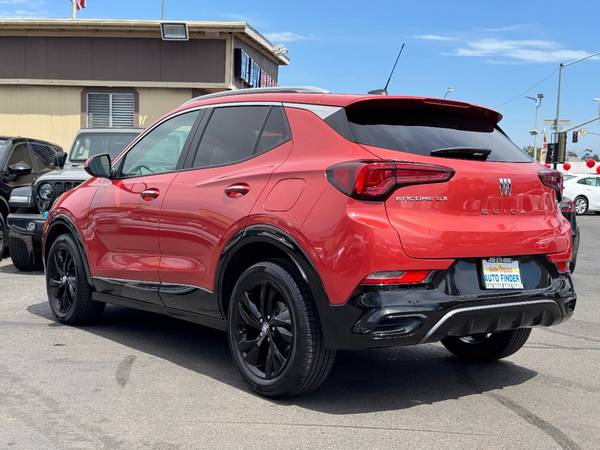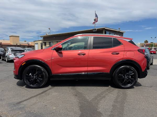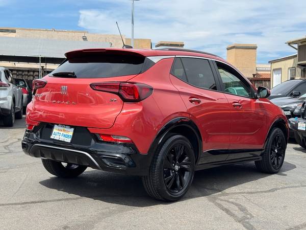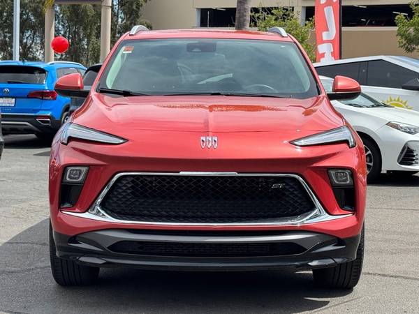Our bold 2024 Buick Encore GX Sport Touring is refined and ready to go in Sunrise Red Metallic! Motivated by a TurboCharged 1.3 Liter EcoTec 3 Cylinder providing 155hp to a CVT for confident acceleration. This Front Wheel Drive SUV also sees nearly 31mpg on the highway with sharp handling for city traffic. Our Encore GX attracts attention, too, with a daring design that displays LED lighting, a gloss-black grille, matching alloy wheels, heated power mirrors, and roof rails.
